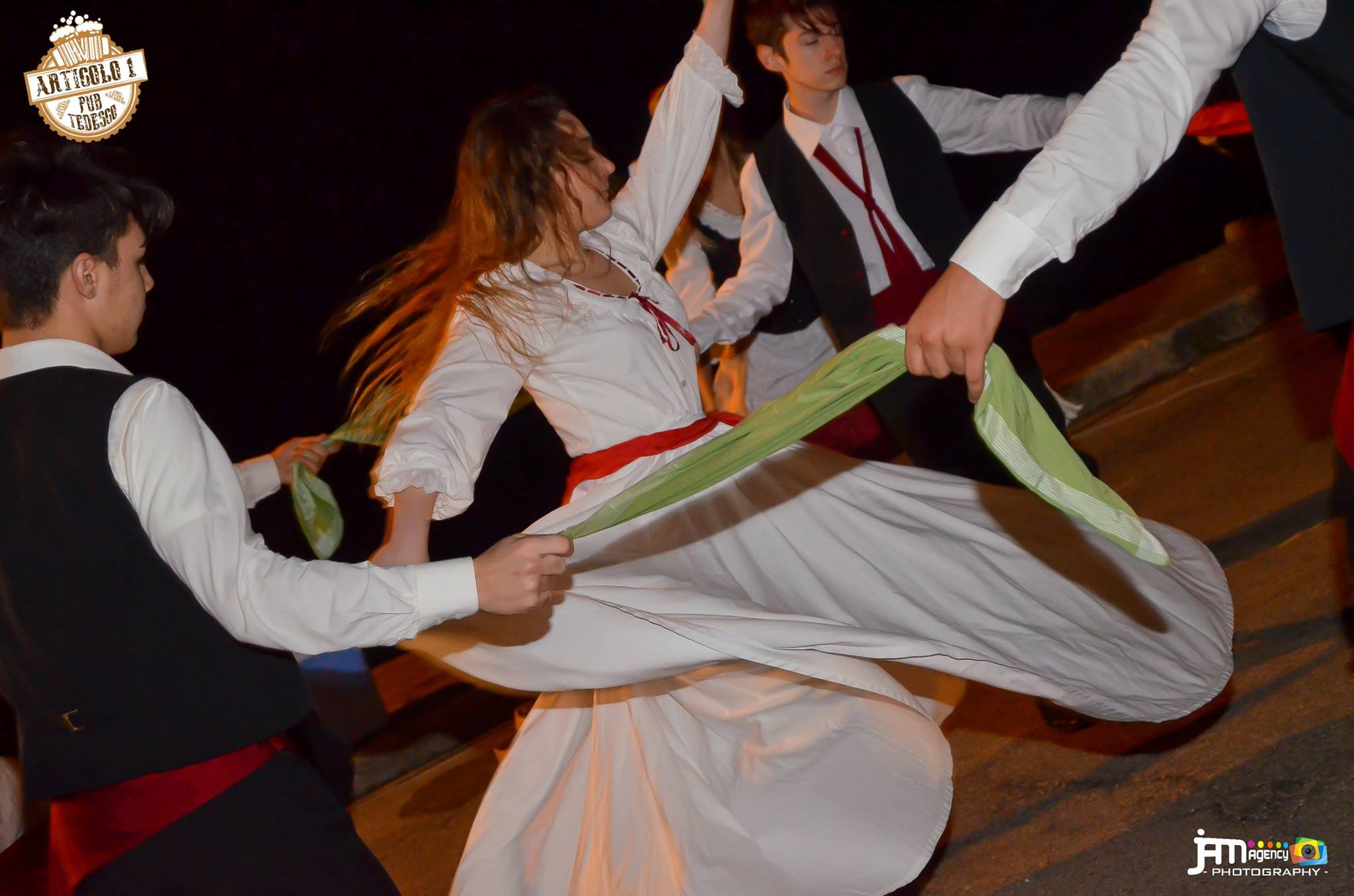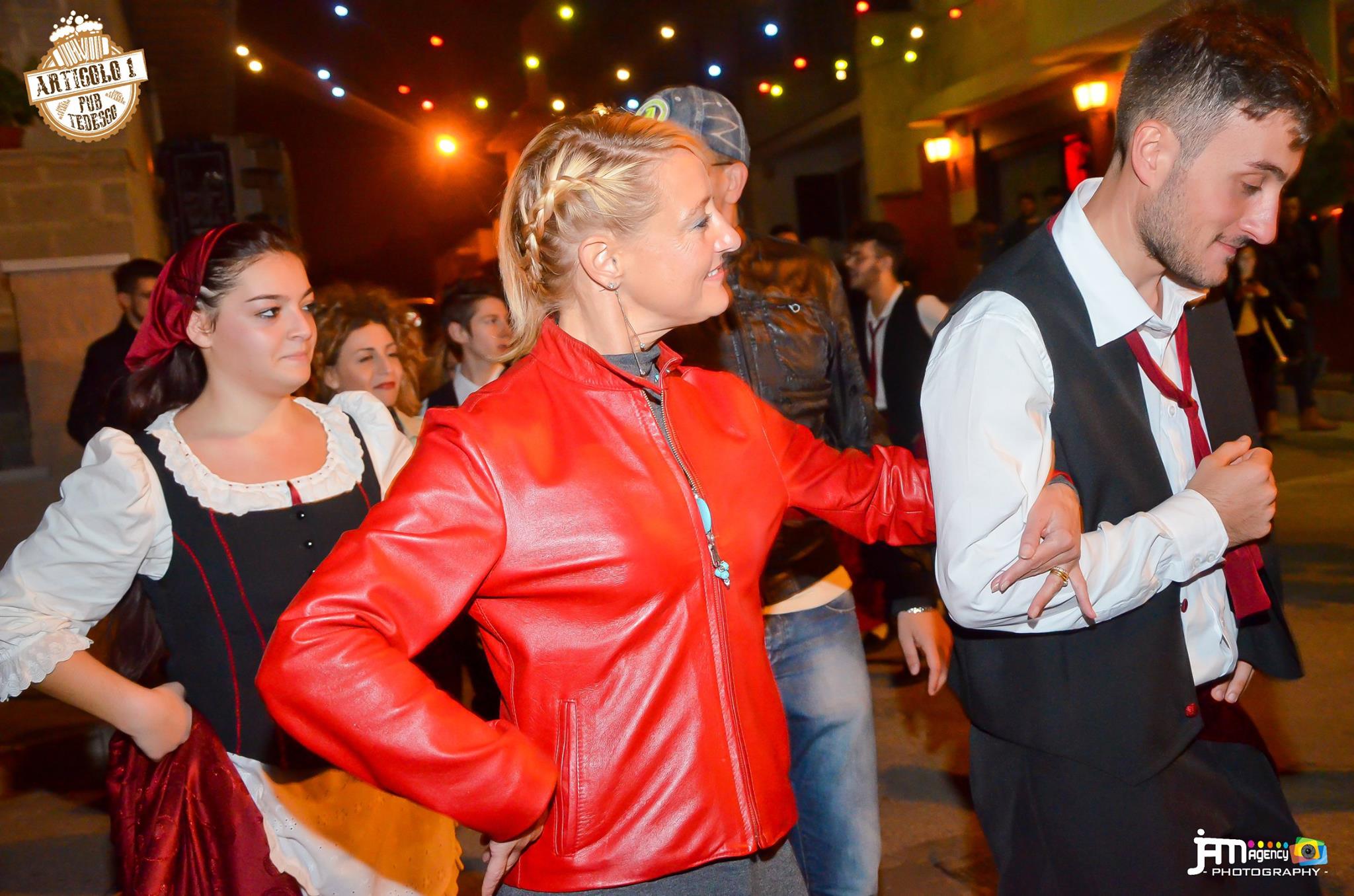 Festivities for San Martino arrived earlier than normal this year in Carovigno, when Articolo 1 pub decided to get the party started on 6th November. The evening kicked off with Folk music and dancing in the street, lead by the very talented Gruppo Folk Citta Bianca. A young, energetic and extremely passionate group who enthused the crowd with their Pizzica folk music and dancing. After a couple of performances by the group, it was time to warm up the crowd on this autunm evening and get the audience involved. Having a front row seat, I was number one target, but then again it I didn’t need much persuading! My ‘cavaliere’ (male dancer) escorted me to the ‘dance floor’; a section of road cordened off for the evenings’ event. After very few instuctions, we were off, toe tapping, and being spun around at a rate of knots! It was a lot of fun! Then it was back to the experts to keep the crowd enteratined whilst super was served.